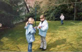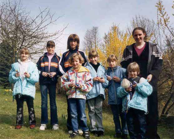 Jeden zweiten Sonntag um diese Zeit treffen wir uns eine Stunde im Gemeindesaal mit Katrin - 16 Jahre - unserer Kindergottesdienstleiterin. Wir sind etwa 10-15 Kinder, die dort zusammen Spaß haben.