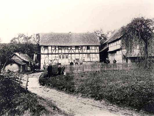 Das ursprüngliche Wohnhaus mit Stallung hatte einen ebenerdigen Hauseingang. Als Nebengebäude waren noch eine Scheune und ein Backhaus vorhanden. Das mit 6 m Durchmesser große Mühlrad war an der vorderen Giebelseite angebracht. Große Sandsteine waren bis in die zweite Etage des Hauses die Grundlage für die Befestigung des Mühlrades.