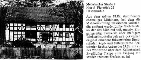 Bis zum Jahre 1935 wurde in der Hasenmühle noch gemahlen, wobei damals im Gudegrund noch 7 weitere Mühlen standen.